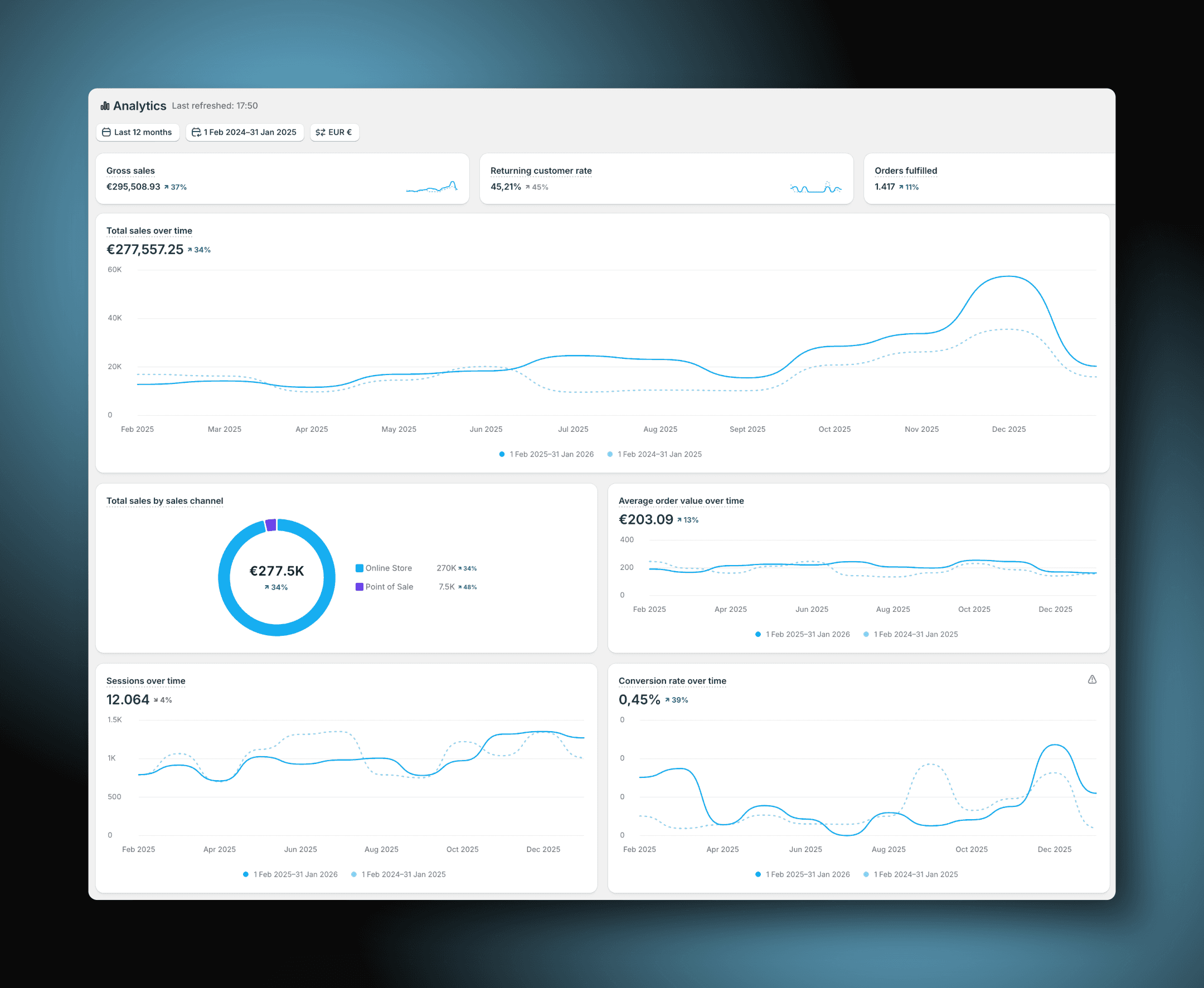 Total sales over time: €277,557.25 (+34%)
